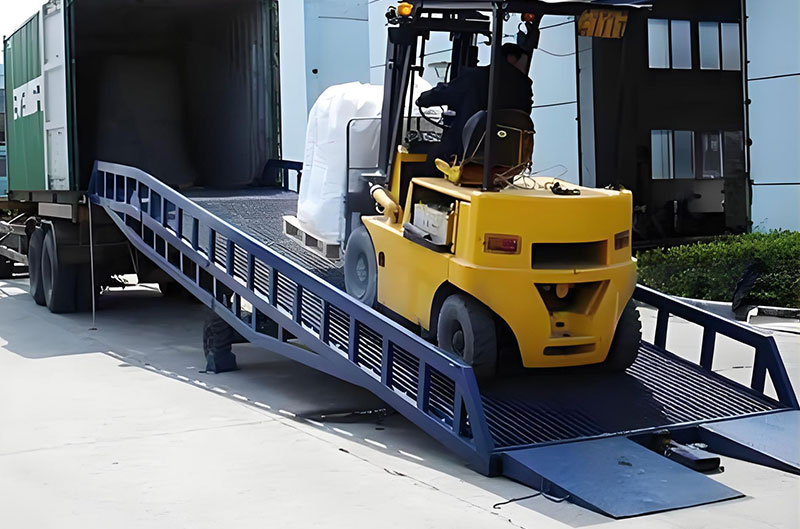 移動登車橋是用于卡車、集裝箱裝卸貨時,叉車從地面行駛至車廂的過渡橋。移動登車橋的可以移動性,可以滿足在不同的場地進行裝卸貨作業(yè)。